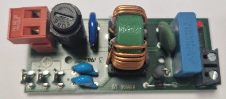 Carte alimentation filtrage avec bornier rouge + bornier noir et fusible et led