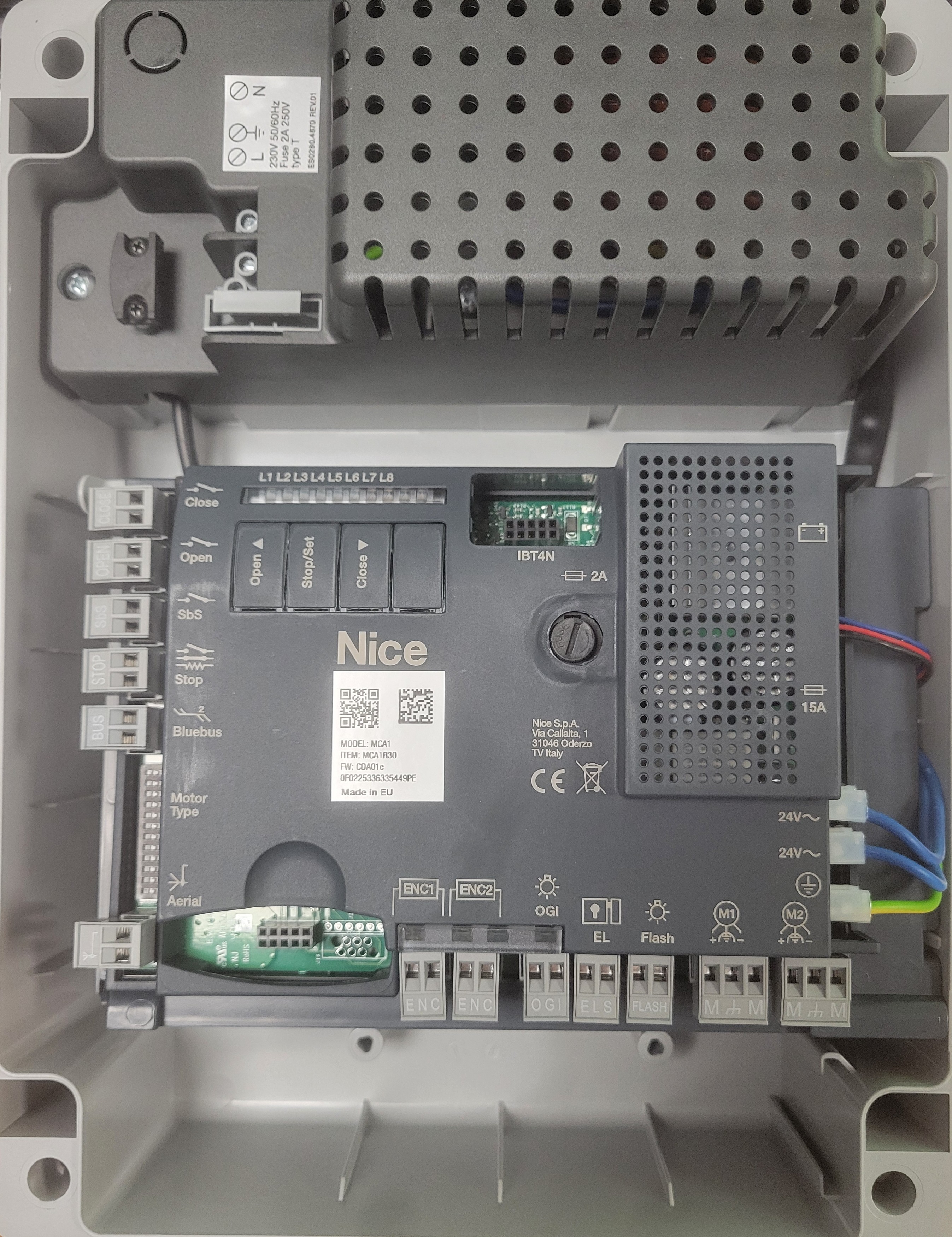 Boitier avec carte Moonclever MCA1R30 - 2 opérateurs Bluebus 24v sans récepteurNICE : MC824HR30 / 421670